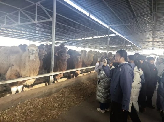 1月28日,研学团青少年在额济纳旗“驼乡”骆驼养殖基地参观