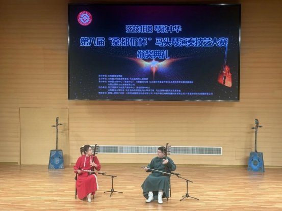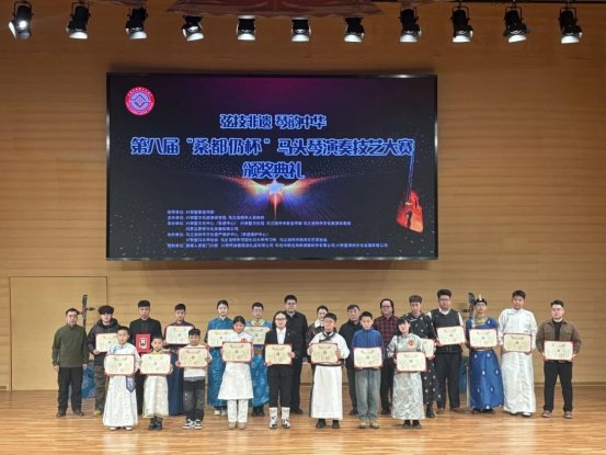 颁奖典礼上,马头琴齐奏《龙马弦韵》以雷霆万钧之势拉开帷幕,呼麦的苍茫、长调的悠远、独唱的奔放与琴声的婉转交织成一幅流动的非遗文化长卷。当来自湖北、黑龙江、吉林、辽宁等地的选手共同奏响《万马奔腾》时,音乐厅内爆发出经久不息的掌声——这掌声既是对艺术交融的礼赞,更是对"中华民族一家亲"的生动诠释。