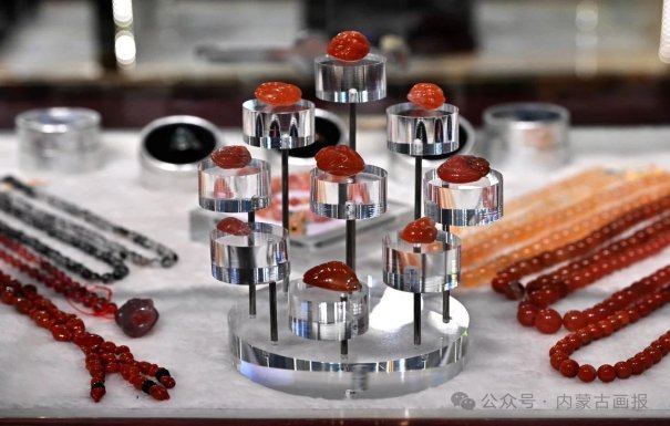 在文旅融合实践进程中,“多伦玛瑙雕刻”非遗技艺与“金石交”品牌深度合作,通过协同展演让文化传承与品牌发展相得益彰。各民族文化在历史长河中交流互鉴的生动印记,非遗从博物馆的静态展品转化为铸牢中华民族共同体意识的鲜活教材。乌拉特中旗积极探索实践,全力打造“手工艺融合创新街区”,深度整合玛瑙产业从原料供应、文创设计到体验消费的全链条资源,构建起集非遗展示、研学体验、直播带货于一体的综合性文化空间。游客能亲眼见证玛瑙原石蜕变为精美艺术品的奇妙过程,亲自参与“金石交”文创产品的设计制作,在沉浸式体验中让民族团结理念深深扎根于心。