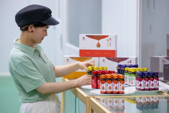 ▲6月20日,在宁夏同心县河西镇一家枸杞企业,工作人员展示枸杞深加工产品。近年来,河西镇通过龙头企业带动的方式发展枸杞深加工,产品深受国内外消费者喜爱。新华社记者 杨植森 摄