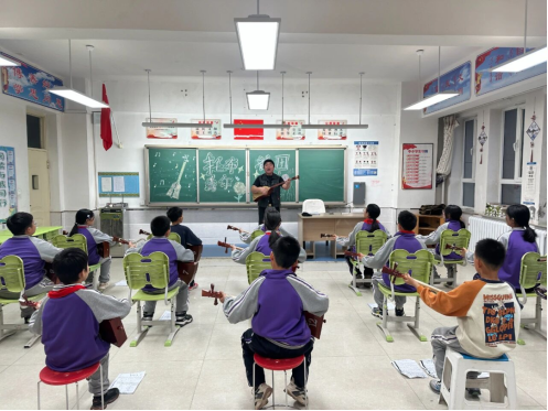 巴彦淖尔市第三小学公益课堂《江格尔》弹唱教学现场